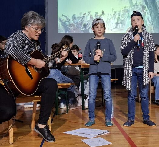 Prireditev so obogatile izvrstne glasbene točke šolskega benda, kitaristov, fantov četrtega razreda in Davida Preglja na klarinetu. Vsi so nas s svojo energijo in zavzetostjo navdušili.