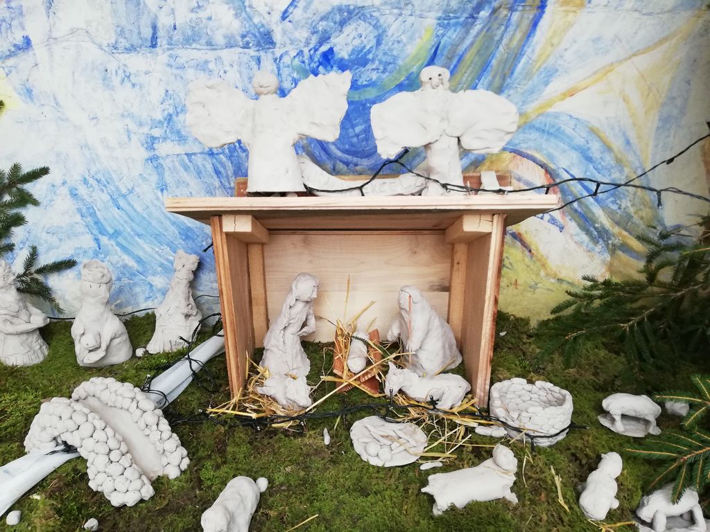 in Lev sta izdelala hlevček in jasli, les nam je podarila družina Cunta. Slamo