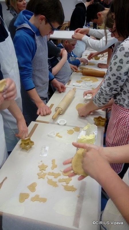 V Branik smo prispeli ob 9.uri. Pričakali so nas učenci 7. razreda, učiteljice in ravnatelj. Najprej so nas pozdravili in pripravili kratek kulturni program. Sledilo je druženje ob pecivu, sadju, kavici in čaju. Po klepetu smo začeli s peko piškotov. Najprej smo umili roke, pripravili testo, ga razvaljali, oblikovali piškote, jih zložili na pladenj in položili v pečico. Potem smo iz papirja izdelali košarice. Ko so bili piškoti pečeni, smo jih zavili in dali v košarice. Ob koncu smo ob zvokih harmonike peli pesmi in se še malo podružili s prijatelji.
