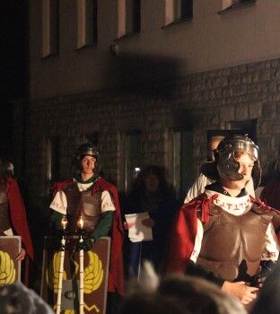Pot nas je vodila čez most, nato skozi park ter proti Glavnemu trgu in do sedeža občine. Posebno vzdušje je pričaralo spremstvo rimske vojske, ki deluje pod okriljem Kulturnega društva Teodozij. S svojo prisotnostjo so dogodek obogatili in pritegnili veliko pozornosti otrok, staršev in drugih obiskovalcev.