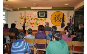 Uvodni pozdrav in spodbudne besede sta tekmovalcem namenila predstavnica Društva matematikov in fizikov Franica Koglot, predstavnik občine mag. Alojz Durn ter ravnateljica Alenka Nussdorfer Bizjak (na fotografiji).