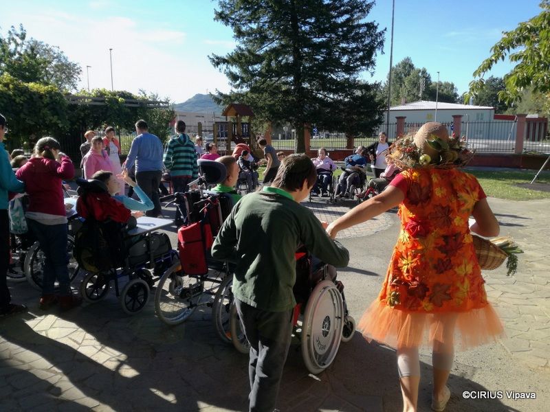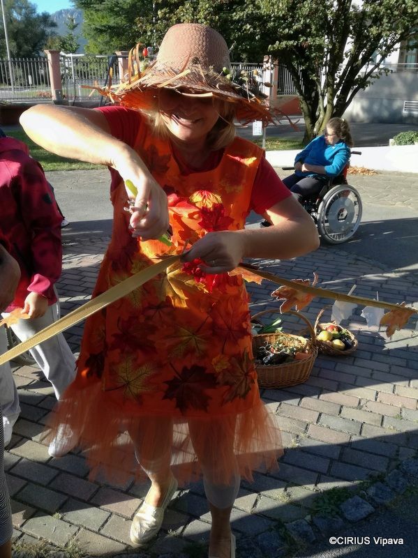 Učenci popoldanskih vzgojnih skupin V cirius Vipava so v sredo, 26.9.2018 popoldne pričakali in pozdravili tetko Jesen. Obiskala nas je z darovi, ki jih je med potjo v naš center nabrala v sadovnjaku, vrtu, polju, vinogradu in gozdu. Učenci so plodove prepoznavali na različne senzorične načine in o nekaterih povedali znane pesmice. Ob spremljavi na harmoniko smo se naučili in prepevali novo pesmico z jesensko tematiko. Skozi jesenske uganke je tetka Jesen preverila znanje o jeseni. Zadovoljna z odgovori je z učenci veselo zaplesala. Še bolj pa je bila vesela vsakega listka, ki je bil rezultat truda in dela posameznega učenca in darilo jeseni.