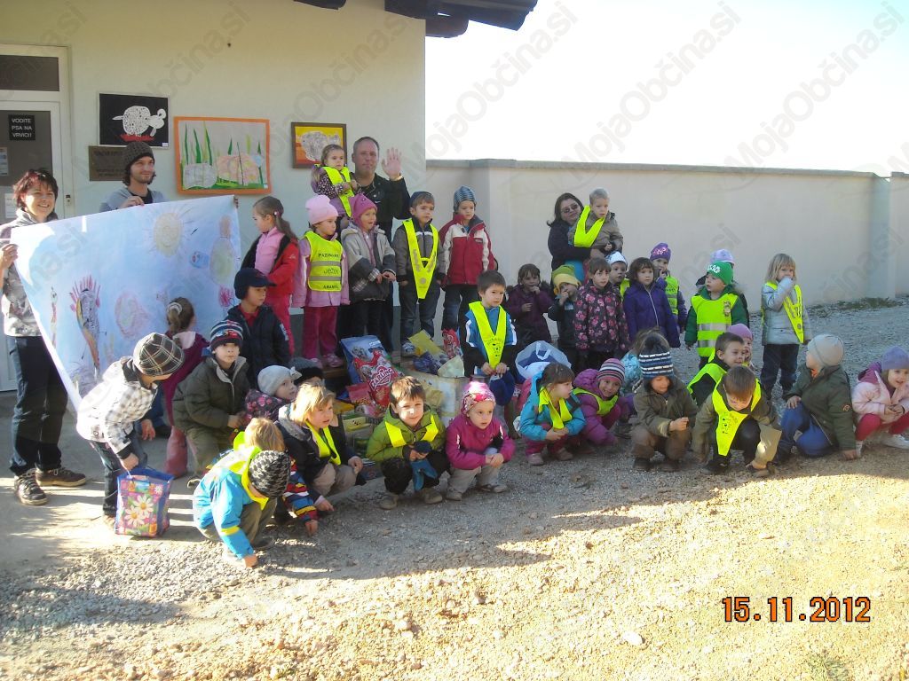 V okviru projekta pa je vrtec izpeljal tudi dobrodelno akcijo za zapuščene živali. Organizirali so srečanje otrok obeh skupin in njihovih staršev. Vsak otrok je skupaj s staršem izdelal muco ali kužka iz umetnega usnja. Nastale izdelke so potem otroci izmenjali na tržnici v zameno za pasjo ali mačjo hrano. S to akcijo so otroci zbrali dobrih 100 kg hrane. Poleg tega pa so otroci zbirali tudi stare odeje, rjuhe in brisače za ležišča za zapuščene živali. Zbrana sredstva in likovne izdelke na temo projekta so otroci in vzgojitelji z avtobusom odpeljali v zavetišče Oskar v Vitovlje.