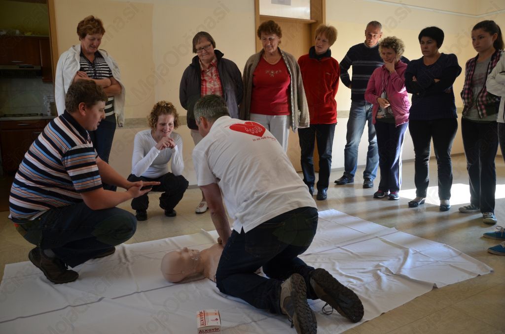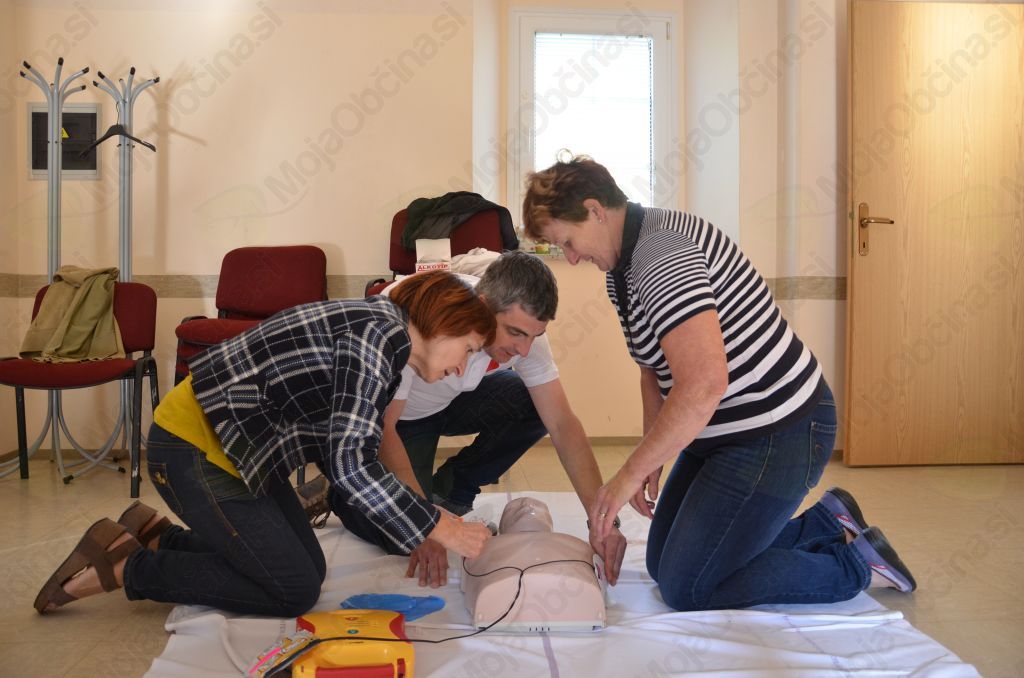 Tečajniki so obnovili osnove prve pomoči, novost zanje pa je bila naprava AED, s katero so se naučili tudi upravljati. Uporaba same naprave je zelo enostavna, saj nas le-ta z jasnimi navodili v slovenskem jeziku vodi skozi postopek, ki ga moramo opraviti pri osebi, ki ima srčni zastoj. Če v prvih desetih minutah temu človeku ne pomagamo, pride do tako obsežnih možganskih poškodb, da je kvalitetno preživetje skoraj nemogoče. Zato je zelo pomembno, da so z AED opremljeni kraji, ki so časovno najbolj oddaljeni od baze NMP. Številni kraji v okolici to napravo že imajo in zagotovo bi bila pomemben prispevek tudi za prebivalce našega kraja. Glede na to, da čakanje na prihod strokovne pomoči traja dlje, kot bi si želeli, je ključnega pomena naša prva pomoč ponesrečencu/bolniku tudi s pomočjo AED-ja.