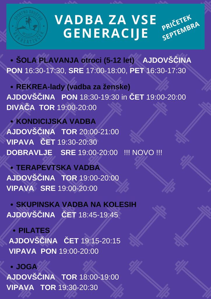 - PRIJAVE: rekreativcek@gmail.com ali 041-472-128