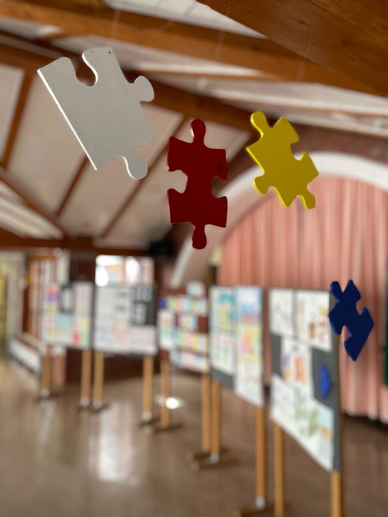 Morda eden najbolj mednarodno prepoznavnih simbolov, povezanih z avtizmom, so pisani koščki sestavljanke. Z letošnjim šolskim letom so tudi naši učenci izdelali pisane koščke sestavljanke, s katerimi smo okrasili avlo. Tako kot je kos sestavljanke unikaten in se prilega širši sliki, ta simbol predstavlja, kako vsak posameznik z avtizmom prispeva svoje edinstvene lastnosti v družbo. Podobno kot mavrica, ki je sestavljena iz različnih barv, obsega spekter avtizma široko paleto osebnosti, sposobnosti in izzivov.