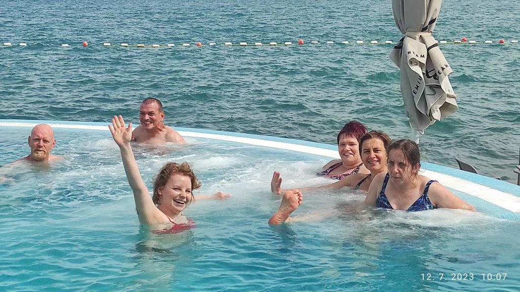 Tako smo se v juliju že dvakrat, prvič 7. in nato še 12. odpravili v Izolo. Kopališče oz. resort Dva topola se nahaja korak od jedra tega starega ribiškega mesta z bogato zgodovino in je obdan s čudovitim parkom. Posebnost je prilagojena plaža za invalide, ki pri vstopu v terapevtski bazen z morsko vodo potrebujejo fizično pomoč. Bazen, opremljen z dvigalom, omogoča, da lahko vsak, ne glede na fizične omejitve, svobodno zaplava.