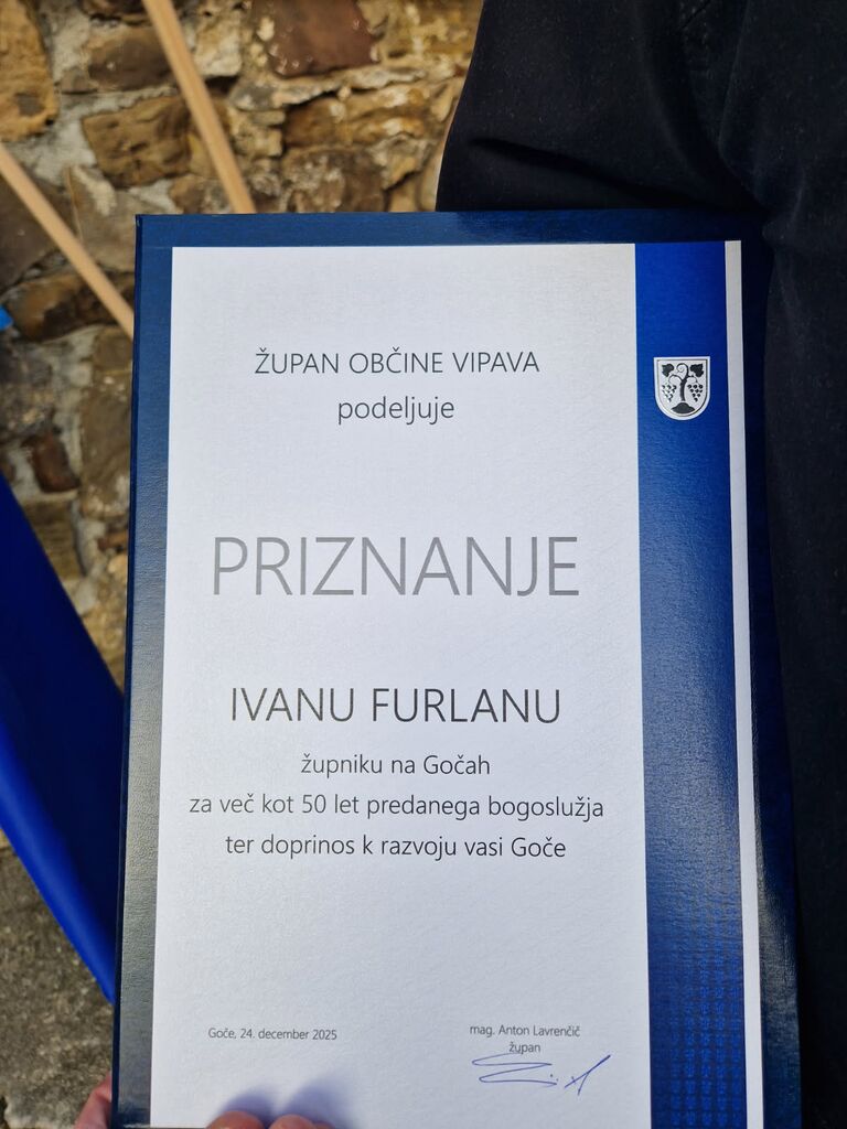 Župan Anton Lavrenčič je ob podelitvi poudaril, da je župnik Ivan Furlan s svojim