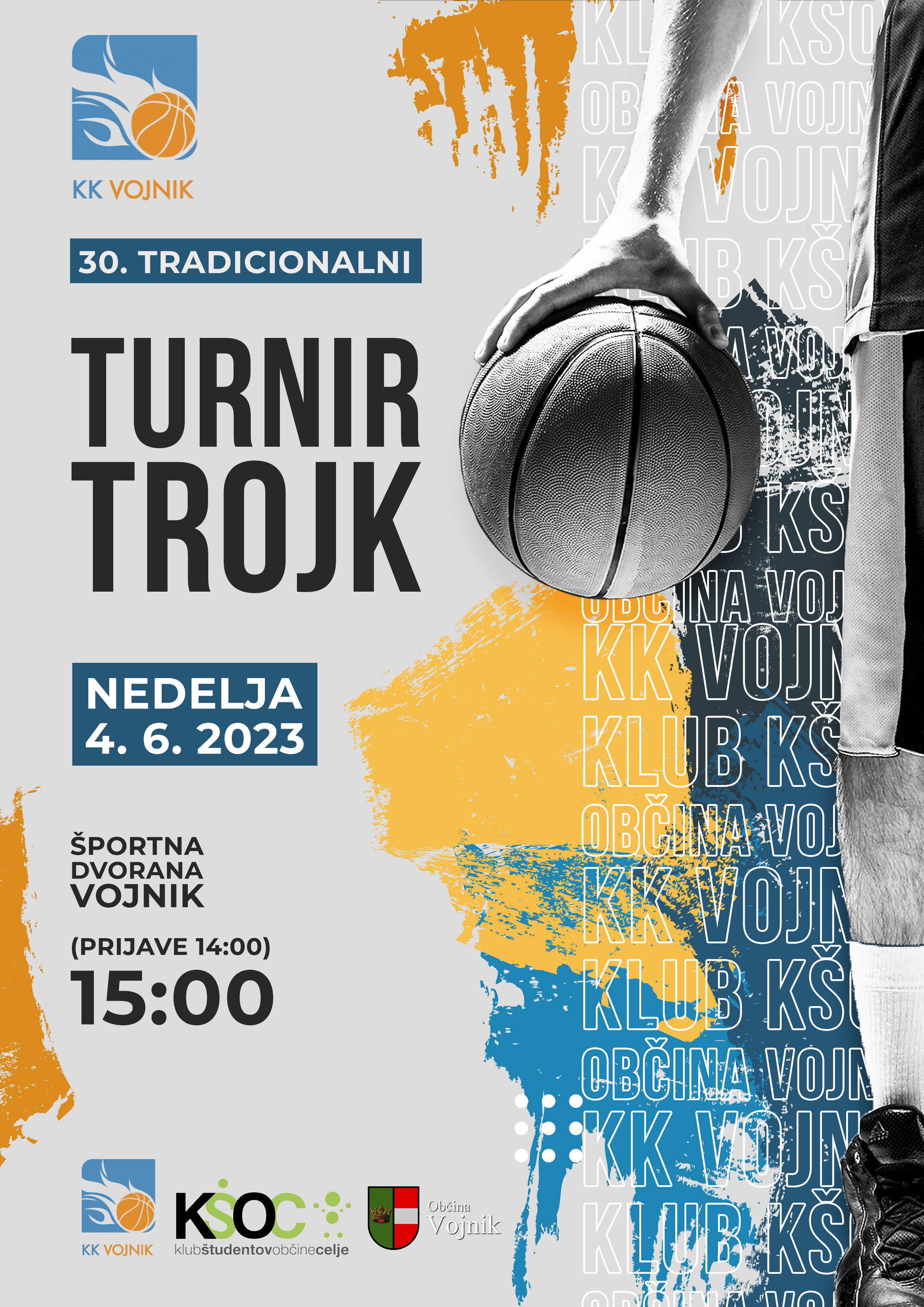 KK Vojnik to leto organizira že 30. tradicionalni košarkarski turnir v igri 3 x 3. Najboljši bodo nagrajeni (denarni sklad + praktične nagrade).