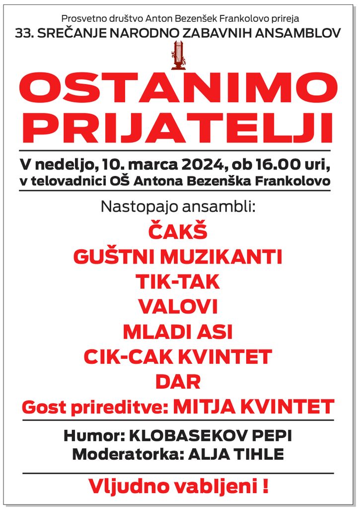 33. srečanje narodno zabavnih ansamblov OSTANIMO PRIJATELJI.