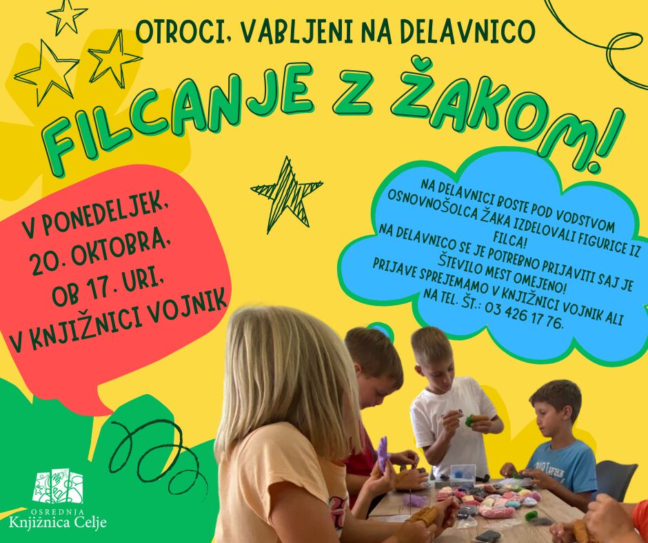 V Knjižnici Vojnik vas čaka prav posebna ustvarjalna dogodivščina! Pridružite se Žaku, ki vas bo popeljal v čarobni svet filcanja volne – starodavne umetnosti, s katero iz mehkih puhastih vlaken nastajajo čudovite oblike, igračke in okrasni predmeti.