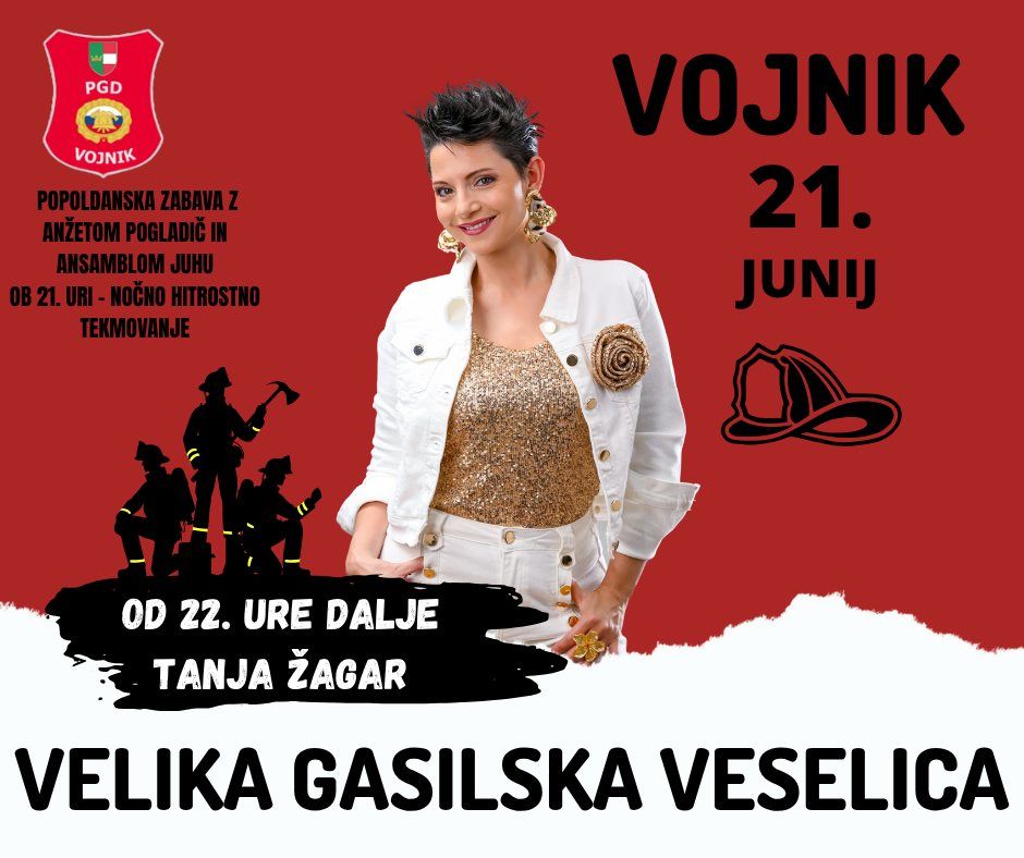 Tradicionalna gasilska veselica z gostjo Tanjo Žagar pod šotorom.