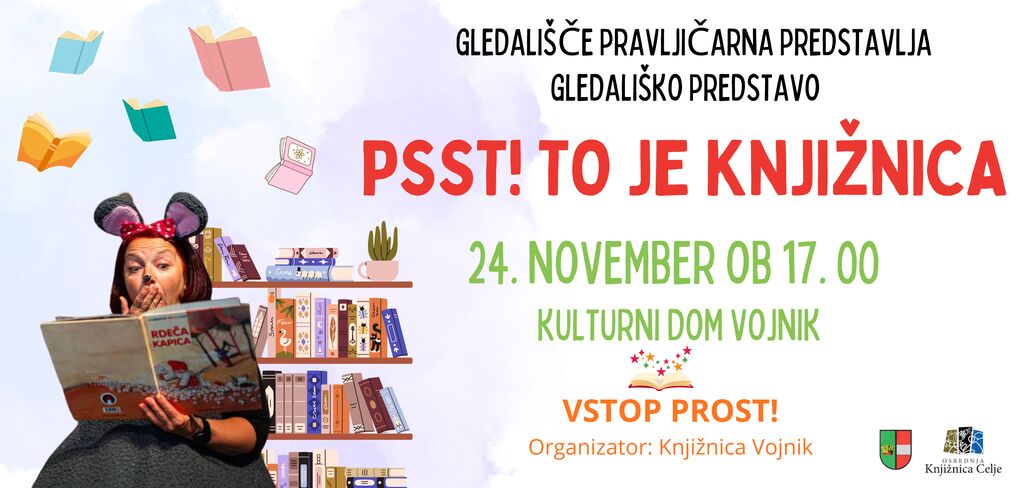 Vabljeni otroci, starši in vsi ljubitelji pravljic – pridite z nami v svet, kjer med knjižnimi policami živijo zgodbe, rime in domišljija!