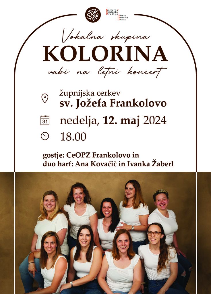 V nedeljo, 12. maja 2024 ob 18.uri vljudno vabljeni na letni koncert Vokalne skupine Kolorina.