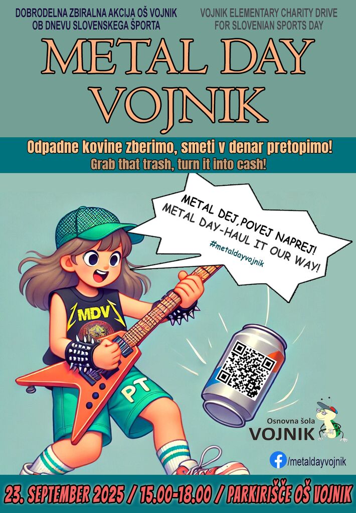 Dobra novica je, da bodo Solar Eclipse🎸 morda nastopile na naslednjem Metal Day Vojnik Slaba pa, da na tokratnem ne bodo, saj jih je pregnalo napovedano slabo vreme ⛈️ Metal Day Vojnik🧲pa seveda bo, in če bo za dramatično spremljavo malo bliskalo, pa še toliko bolje⚡ Nespremenjeno ostaja to, da bomo zbirali vse kovinske odpadke 🪡🥫🚂 Zbiralno akcijo starega papirja smo prestavili na sredo, 1. oktober 2025, a če kdo že jutri spotoma pripelje svoj star papir, pa bomo vzeli tudi tega🗞️ Se vidimo jutri, 23. septembra 2025, med 15.00 in 18.00♻️ |