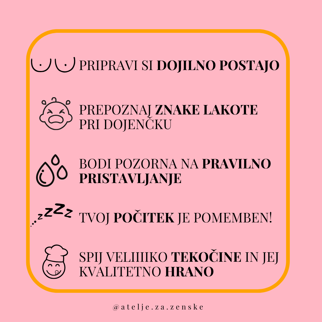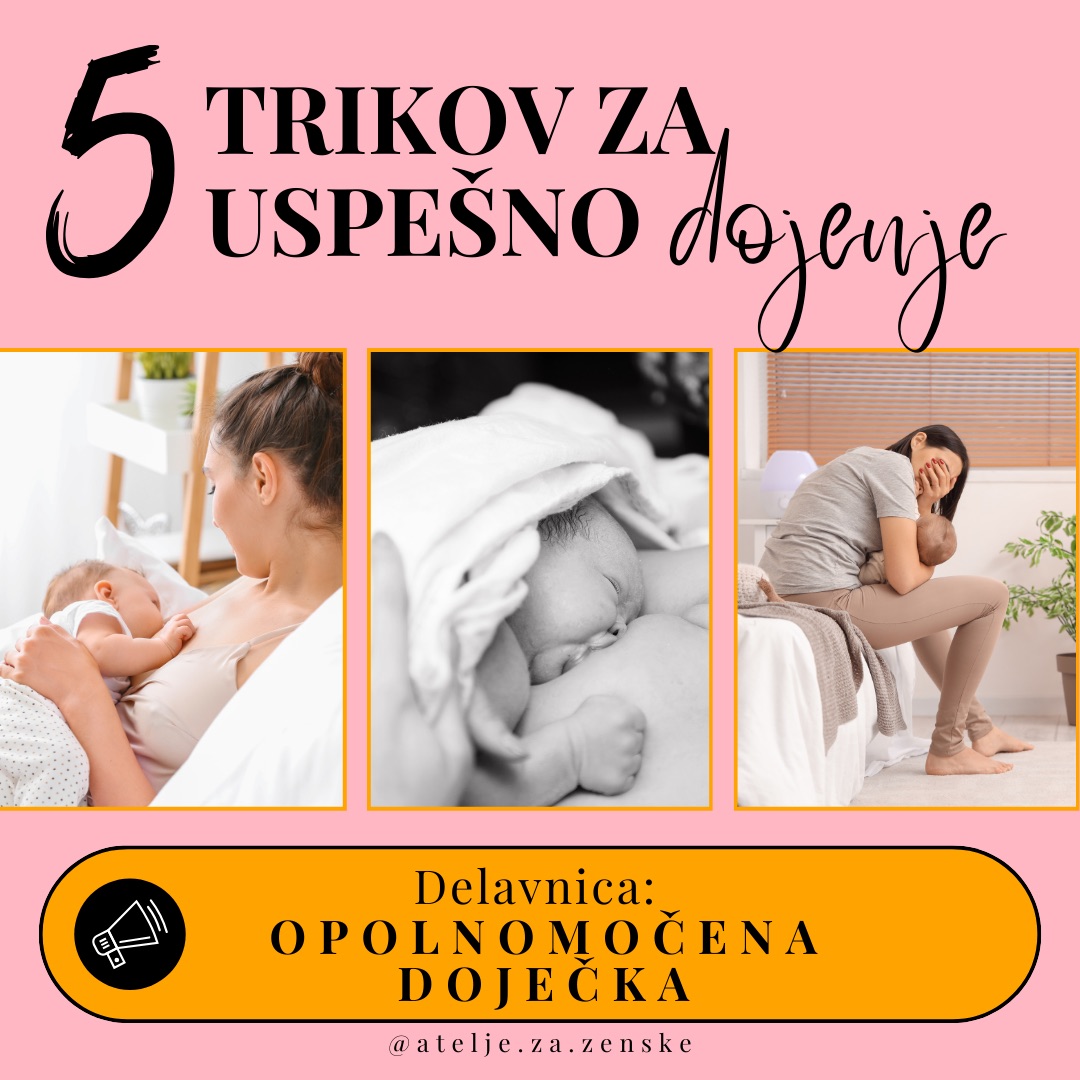 Če si vsaj na eno trditev prikimala in uspešnosti dojenja (tokrat) ne želiš prepustiti naključju, si vabljena na delavnico priprave na dojenje: OPOLNOMOČENA DOJEČKA, kjer boš izvedela:
