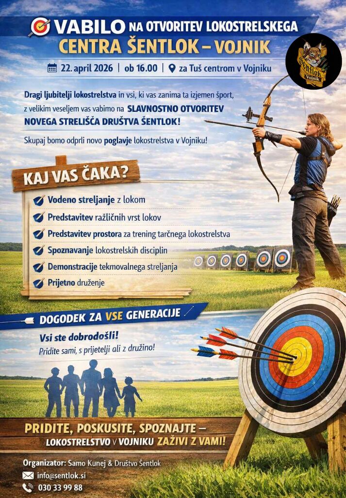 Na otvoritvi bomo člani društva Šentlok predstavili prvine lokostrelstva, opremo in loke, vsi zainteresirani pa boste lahko tudi preizkusili varno streljanje pod nadzorom inštruktorjev.