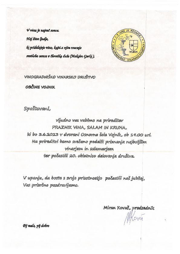 Organizator: Vinogradniško vinarsko društvo Vojnik