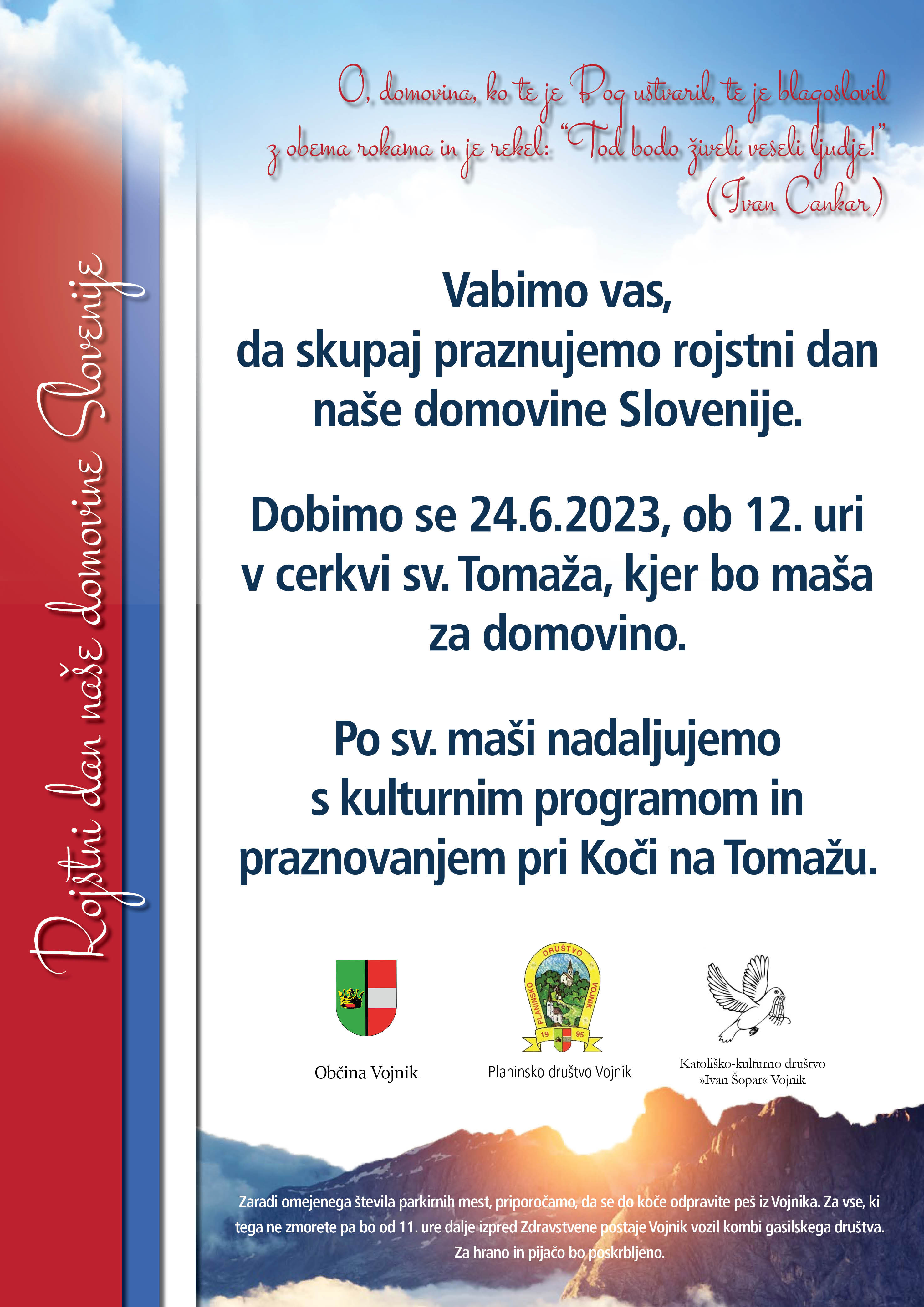 Občina Vojnik, Planinsko društvo Vojnik in Katoliško kulturno društvi Ivan Špar Vojnik vabijo na prireditev.
