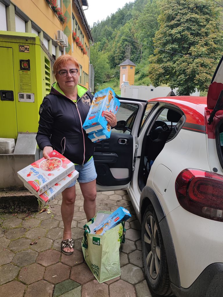 Razdejanje je v naša srca vlilo strah in nemoč. Sočustvovali smo z ljudmi in le misel po pomoči nas je tolažila. Predsednica invalidov Žalec, Nataša Privošnik, je iskala nekoga, ki ima brezglutensko dieto. Na pomoč je takoj priskočila Majda Jelen. Z Natašo in Zdenko Jan smo se podali proti kmetiji Ročnik, kjer je bil štab in kjer je vzletal helikopter s hrano ter jo vozil na območja, ki so bila odrezana od sveta. Z Natašo sva pozvali invalide, prijatelje in sosede k pomoči. Odziv je bil neverjeten, hrane in prepotrebnih higienskih pripomočkov se je nabralo za tri avtomobile. Vse darove smo odpeljali v štab v Savinjsko dolino. S predsednikom ZDIS in predsednico ZDUS smo nato obiskali še invalide in upokojence Mozirja ter jim oddali nekaj hrane, čistil in pripomočkov.