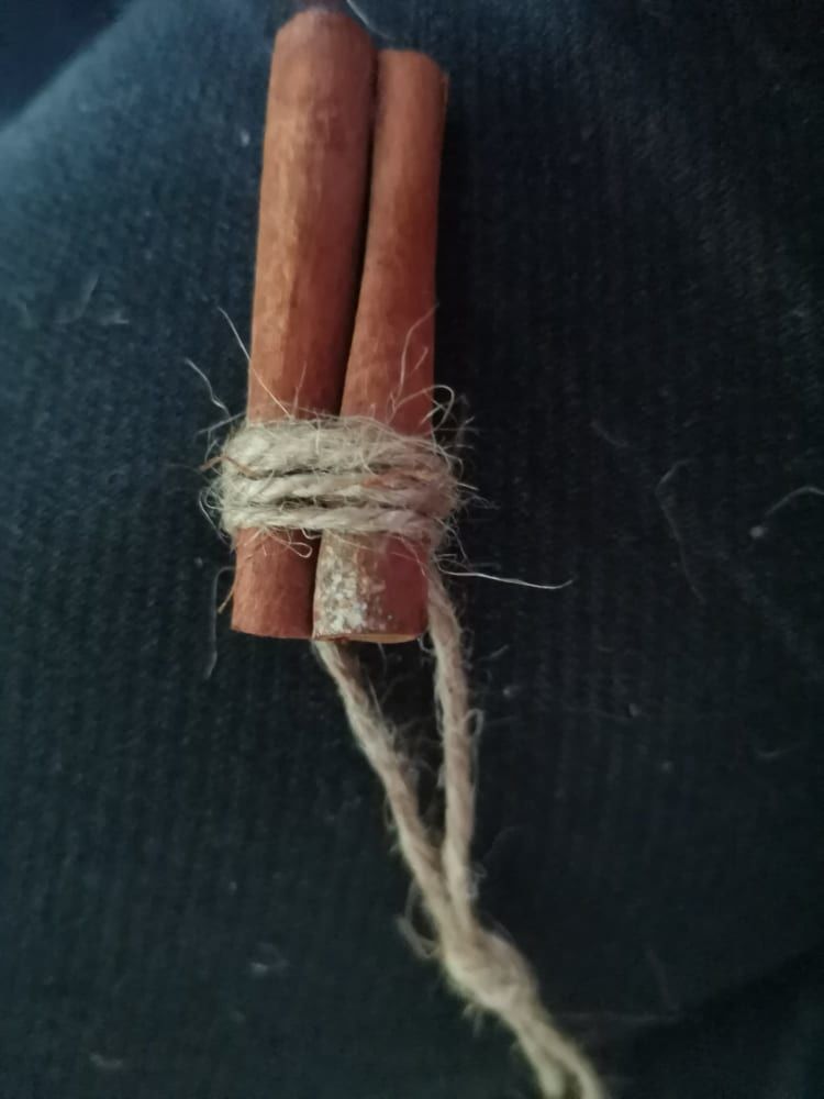 Na cimetove palčke lahko s pomočjo silikona pritrdite vrvico, ki jo kasneje oblikujete v obesek. Okoli cimeta lahko tudi navijete aranžersko žičko, s pomočjo katere ga pritrdite na jelko. Na enak način lahko na jelko pritrdite storže.