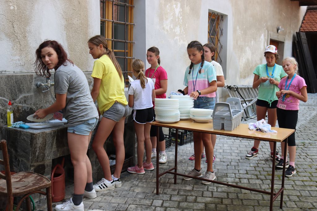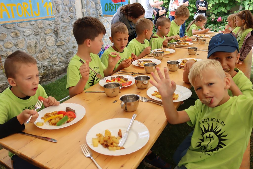 Prvi dan je potekal po ustaljenem urniku. Drugi dan pa smo v svojo sredo povabili neustrašne Celjske viteze – vojake, ki so nam predstavili svoj poklic in vojaško opremo. Preizkusili pa smo se lahko tudi v vojaškem poligonu. Tretji dan je bila vrednota dneva romanje, zato smo se odpravili do podružnične cerkve sv. Katarine v Lembergu, kjer smo dan začeli z romarsko mašo, nato pa nadaljevali pot na Lemberški grad, kjer je letos bila snemana tudi oratorijska himna. Tam nas je sprejel graščak Franci Zidar in razkazal notranjost gradu. Oratorijanci so že od začetka nestrpno pričakovali glavni dogodek četrtega dne . . . vodne-blatne igre. Peti dan smo oratorij zaključili s sveto mašo, kamor so bili povabljeni tudi starši in sorodniki otrok. Po tem je sledil piknik in tradicionalni oratorij ima talent.