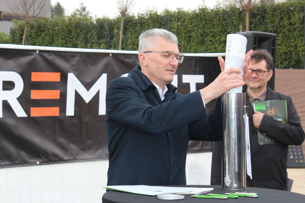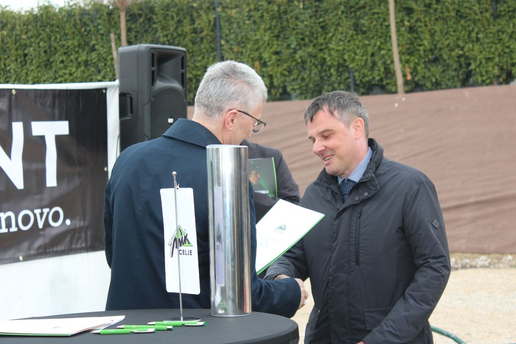 »Postavitev temeljnega kamna s časovno kapsulo« ter s tem napoved pričetka gradnje Razvojnega centra MIK in Inštitut dr. Peter Novak in nove tovarne prezračevalnih naprav MIKrovent, je bil s pomočjo petih mož udejanjen.