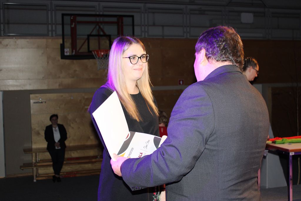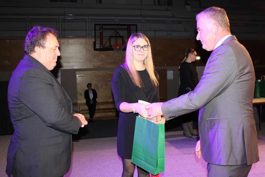 - Ema Skaza, ki je s skupino plesalk jazz baleta osvojila drugo mesto na evropskem prvenstvu. Postale pa so tudi državne prvakinje. Ker je Ema danes na obveznem treningu, bo priznanje v njenem imenu prevzela teta Nataša.