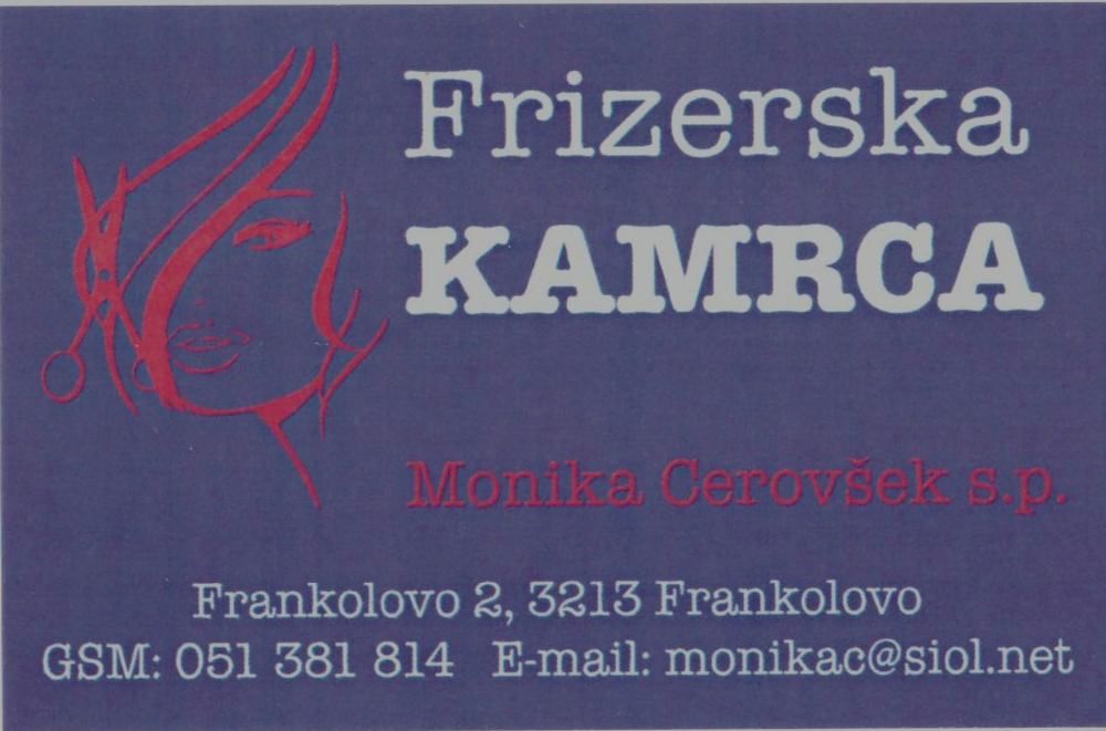 Na Frankolovem je v mesecu decembru 2018 spet odprl svoja vrata frizerski salon, ki obratuje pod imenom FRIZERSKA KAMRCA, v njem pa spretno krmari z vašimi lasmi frizerska mojstrica Monika Cerovšek. Gospa Monika je domačinka, ki se je po dveh desetletjih delovnih izkušenj, ki jih je pridobila večinoma v podjetju Nega, d. o. o., Celje, odločila za samostojno podjetniško pot in za najem nedavno zaprtega frizerskega salona na Frankolovem. Svojim strankam ponuja storitve tako moškega kot ženskega in otroškega frizerstva. Drugače rečeno, uredi majhne in velike stranke, mlado in staro. Vrata njenega salona so odprta izmenjaje: ob ponedeljkih, sredah in petkih v popoldanskem času; ob torkih, četrtkih in sobotah pa dopoldne. Iz lastnih izkušenj je prepričana, da je takšen delovni čas v največji meri prilagojen potrebam strank, sicer pa svojim strankam priporoča, da se predhodno naročijo po telefonu na številko 051 381 814. Vabljeni!