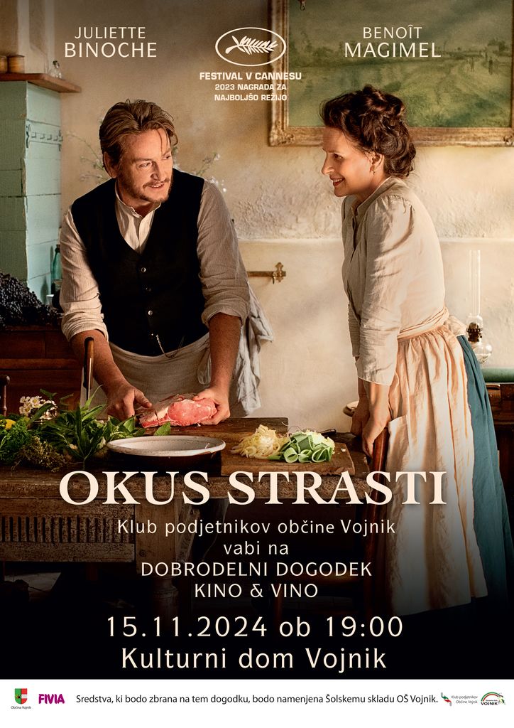 V petek, 15. novembra 2024, ob 19. uri vas Klub podjetnikov občine Vojnik vabi na dobrodelni dogodek "Kino in vino", ki bo potekal v Kulturnem domu Vojnik na naslovu Celjska cesta 23a, Vojnik. Gre za večer, posvečen filmskemu užitku in degustaciji vina, katerega cilj je zbiranje sredstev za Šolski sklad Osnovne šole Vojnik.