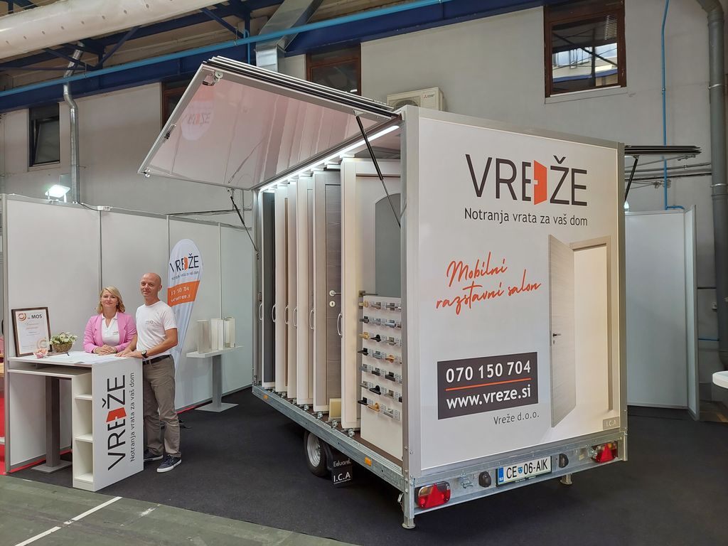 Kaj bi si kupec želel boljšega kot to, da pride razstavni salon notranjih vrat kar k njim domov? Tako se je Sebastijanu Vrežetu iz Homca 7c, nedaleč od Nove Cerkve, pred leti porodila enkratna zamisel. Zasnoval je mobilni razstavni salon notranjih vrat, ki je plod lastnega dela in razvoja.