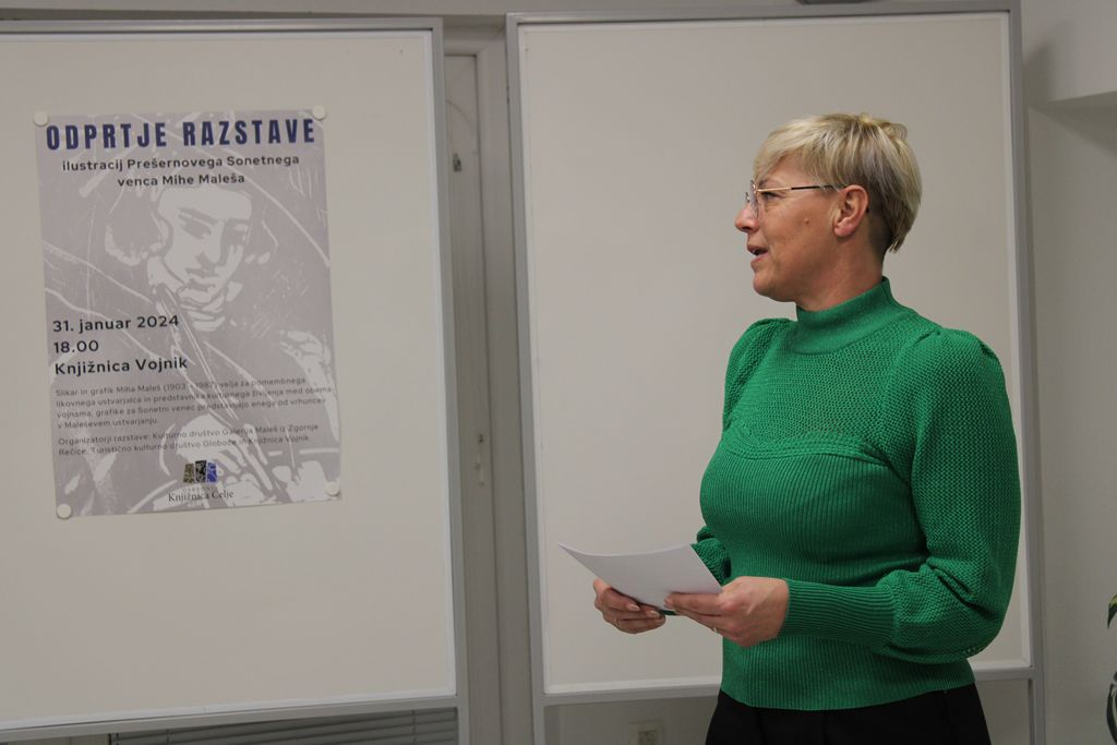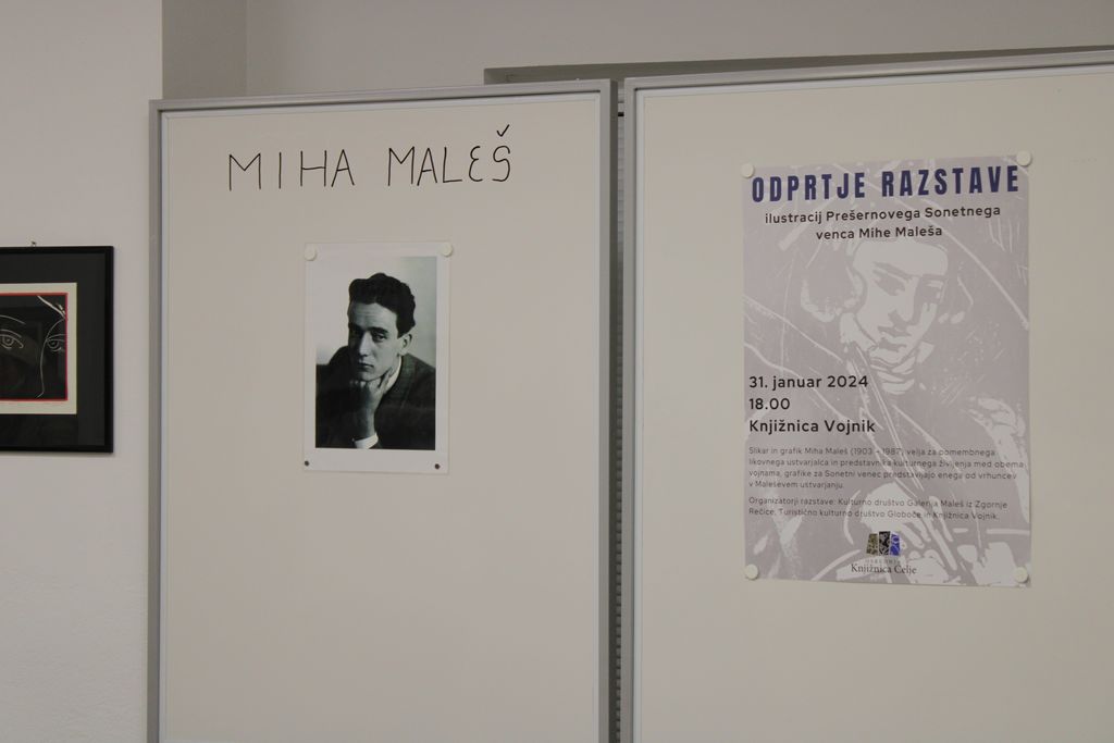 V Knjižnici Vojnik smo v sodelovanju s Kulturnim društvom Galerija Maleš iz Zgornje Rečice in Turistično kulturnim društvom Globoče pripravili razstavo Maleševih grafik, ki jih je slikar ustvaril na temo pesnikovega Sonetnega venca. Kot je povedala odlična poznavalka Maleševega življenja in dela umetnostna zgodovinarka Breda Ilich Klančnik: »Med pomembnimi likovnimi ustvarjalci minulega stoletja na Slovenskem je prav Maleš posvetil največ pozornosti Prešernovi podobi. Ta ga je vznemirjala že od malega. S svojo izvirno ilustracijo je Maleš pospremil številne Prešernove verze (Dekletam, Strunam, Pod oknam), kot najpomembnejša likovna spremljava njegove poezije pa se je vtisnila serija tridesetih gravur, posvečenih Sonetnemu vencu.«