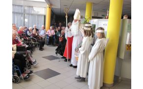 Po kratkem nagovoru so skupaj zapeli, predstavniki Karitas so jim razdelili simbolična Miklavževa darila, nato pa se je Miklavž s spremstvom odpravil na obisk tistih, ki so vezani na življenje v postelji. Obisk pri teh starostnikih se človeka najbolj dotakne, ko vidiš, kako so nemočni in kako jim čisto majhna pozornost pomeni zelo veliko.