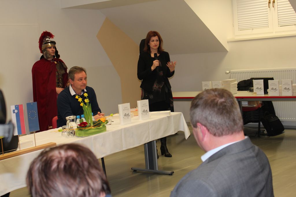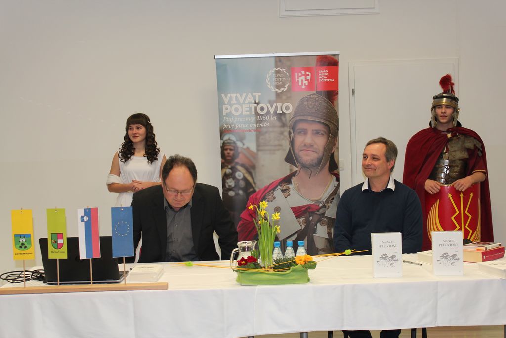 Pozdravila sta nas Dušan Horvat, predsednik Sveta KS Frankolovo, in ravnateljica Celjske Mohorjeve družbe dr. Tanja Ozvatič. Med dogodkom je potekal kulturni program, sodelovali so : Klementina Selčan in Patricija Jakop, klavir in vokal, Kvartet Frankolovo ter Ana Žohar in Gasper Birk v rimskih oblekah.