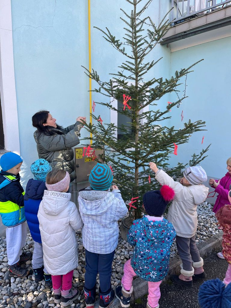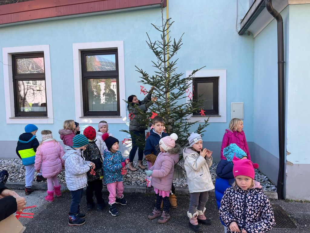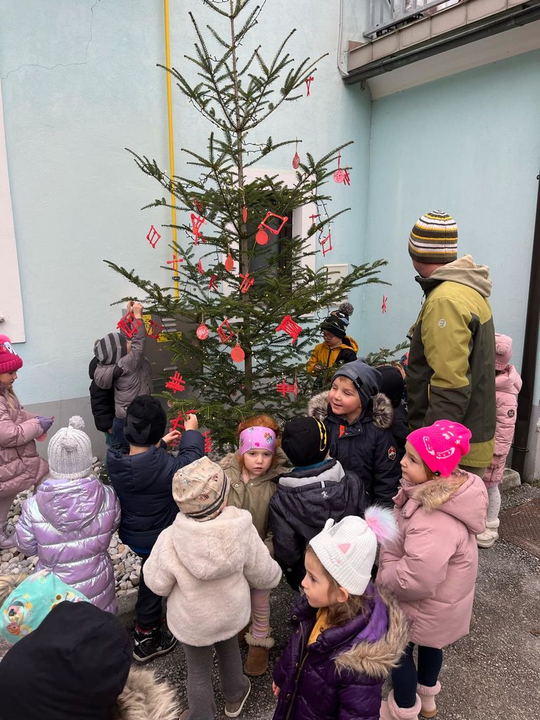 Otroci iz Vrtca Mavrica in vrtca Danijelov Levček vsako leto poskrbijo za čarobno tradicijo – z veseljem izdelajo unikatne okraske in skupaj okrasijo smrečico. Letos so izbrali modno rdečo barvo, ki ji daje prav poseben praznični čar.