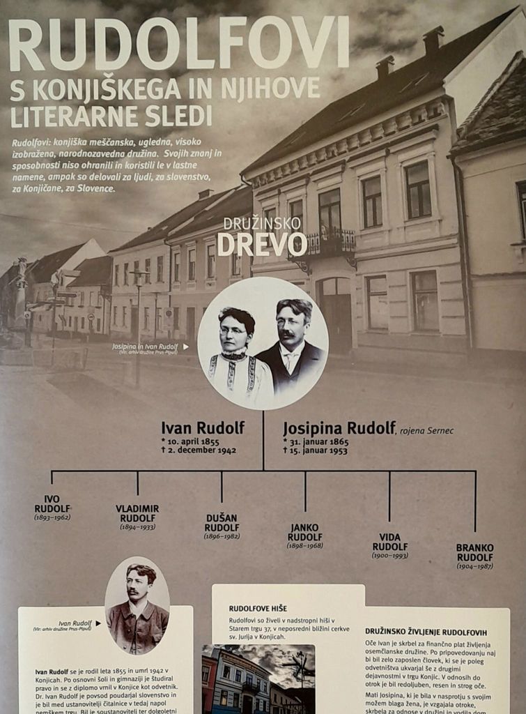 Rudolfovi, ugledna meščanska družina (oče Ivan in mama Josipina) s šestimi otroki (Ivo, Vladimir, Dušan, Janko, Vida in Branko), je v Slovenskih Konjicah živela konec 19. in v začetku 20. stoletja. Največji pečat so pustili v literarnem ustvarjanju, predvsem Branko Rudolf, avtor dobro znane Hude mravljice, in Vida Rudolf.