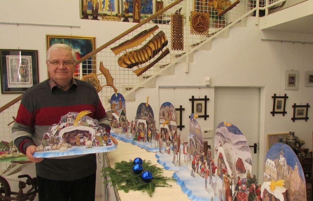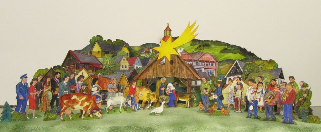 Akademski slikar Jiri Škopek se je rodil 21. julija 1933 v Velimi pri Kolinu. V letih 1947–1951 je obiskoval steklarsko umetniško šolo, oddelek poslikave in jedkanja stekla v Železnem Brode. Po letu 1953 je študiral filmsko grafiko in karikaturo in se nato zaposlil na ljudski šoli v Jaromeru. Dolga leta je bil tudi zaposlen v Muzeju Božene Nemcove v Česka Skalici in se po letu 1982 posvetil samostojni umetniški poti. Njegov umetniški opus je zelo bogat, saj je narisal več kot 500 osnutkov za razglednice krajev in različnih prazničnih motivov. Nekako vrhunec njegovega opusa je pa 24 papirnatih jaslic, ki so na Češkem zelo cenjene. Umrl je 30. avgusta 2018 v Jaromeru.