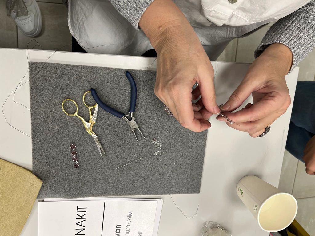 V Knjižnici Vojnik je v preteklih dneh zadišalo po ustvarjalnosti in eleganci, saj smo gostili čudovito delavnico izdelave nakita. Pod strokovnim mentorstvom priznane oblikovalke Darje Trivan, katere unikatne kreacije nosi tudi sloviti model Bernardo Marovt, so udeleženci ustvarjali prav posebne zapestnice iz bleščečih Swarovski kristalov.