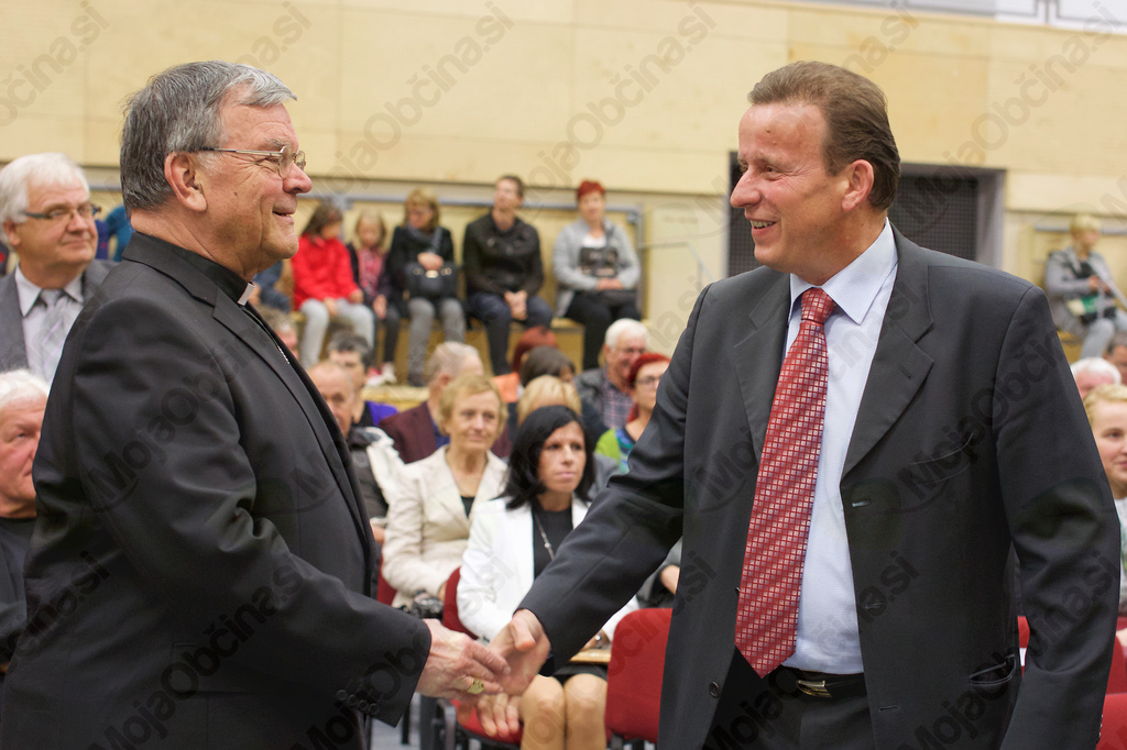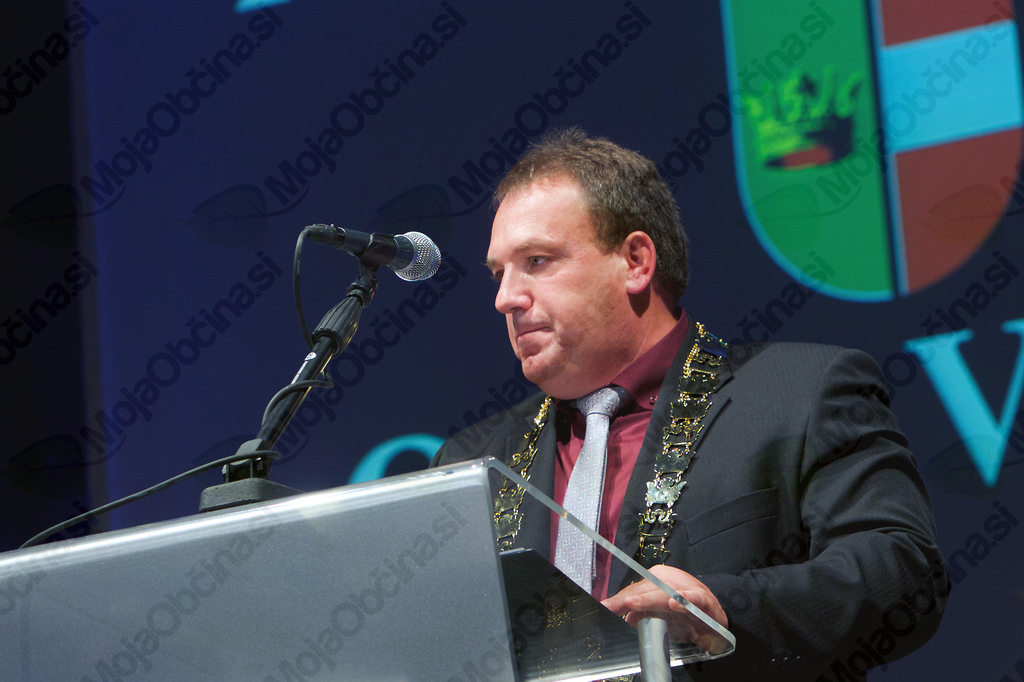 »Praznovanje je pravo, če sledi dobro opravljenemu delu in ga praznuješ v krogu prijateljev, ki so pri tem sodelovali. V naši sredi najprej pozdravljam vse vas občinske nagrajence, današnje in nagrajene v preteklih letih. Zaradi vas je občina takšna, kot je, ker živite in delate več kot le zase, s tem bogatite svoje in naše življenje. Za nami je uspešno obdobje 20 let, za mano pa tudi prvo leto dela na mestu župana občine. Delo v občini se z novimi volitvami ni postavilo na glavo, temveč se skupaj s svojimi sodelavci trudim nadaljevati dobro delo tudi vnaprej. Ne bom govoril o težavah, s katerimi se srečujemo glede financiranja občin. Z razpoložljivimi sredstvi želimo narediti čim več v slogi in ob sodelovanju vseh, vključenih v delo. Kljub temu imamo v zadnjem letu nekaj uspehov: do konca smo pripeljali OPN in čakamo samo še končna mnenja soglasodajalcev; uspešno se je zaključila sanacija skalnega podora pod gradom Lemberg; uspešno se izvaja projekt protipoplavnih rešitev; izvajamo II. fazo kanalizacije Frankolovo in ureditev parka Frankolovo itd.,« je poudaril vojniški župan Branko Petre in zaključil z mislijo: »Hvala mnogoterim posameznikom za vaš pozitiven prispevek. Vsak zase in vsi skupaj smo občina Vojnik, ki danes praznuje.«
