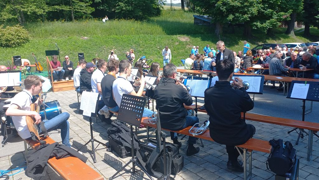V nedeljo, 25. maja 2025, so nam tako godbeniki iz Nove Cerkve polepšali nedeljsko dopoldne in nam dodatno obogatili praznovanje krajevnega praznika. Za uvod so nam zaigrali pred farno cerkvijo sv. Jožefa, pred drugo sveto mašo. Sledil je koncert ob 11. uri pri prireditvenem paviljonu v graščinskem parku, kjer je istočasno potekal tradicionalni spomladanski Kramarski sejem v organizaciji Društva Talon Frankolovo.