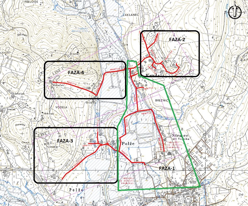 · kanalizacija Razdelj je zaradi svoje obsežnosti razdeljena na 4 faze, v letu 2021 se bo zgradila faza 1 (slika v prilogi);