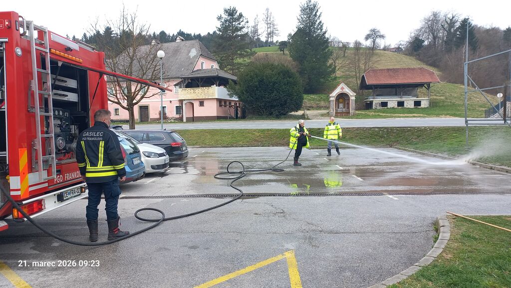 Današnje jutro se je začelo delovno že v zgodnjih urah. Gasilci vseh gasilskih društev v občini so s svojo opremo in vodo temeljito očistili središča vseh treh krajevnih skupnosti. Odstranili so ostanke listja in nadležen cvetni prah, ki se že pojavlja v teh spomladanskih dneh, ter tako poskrbeli za urejen videz naših krajev.