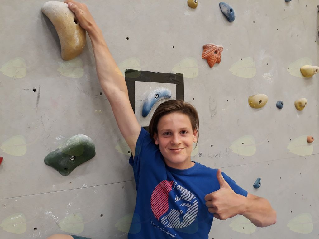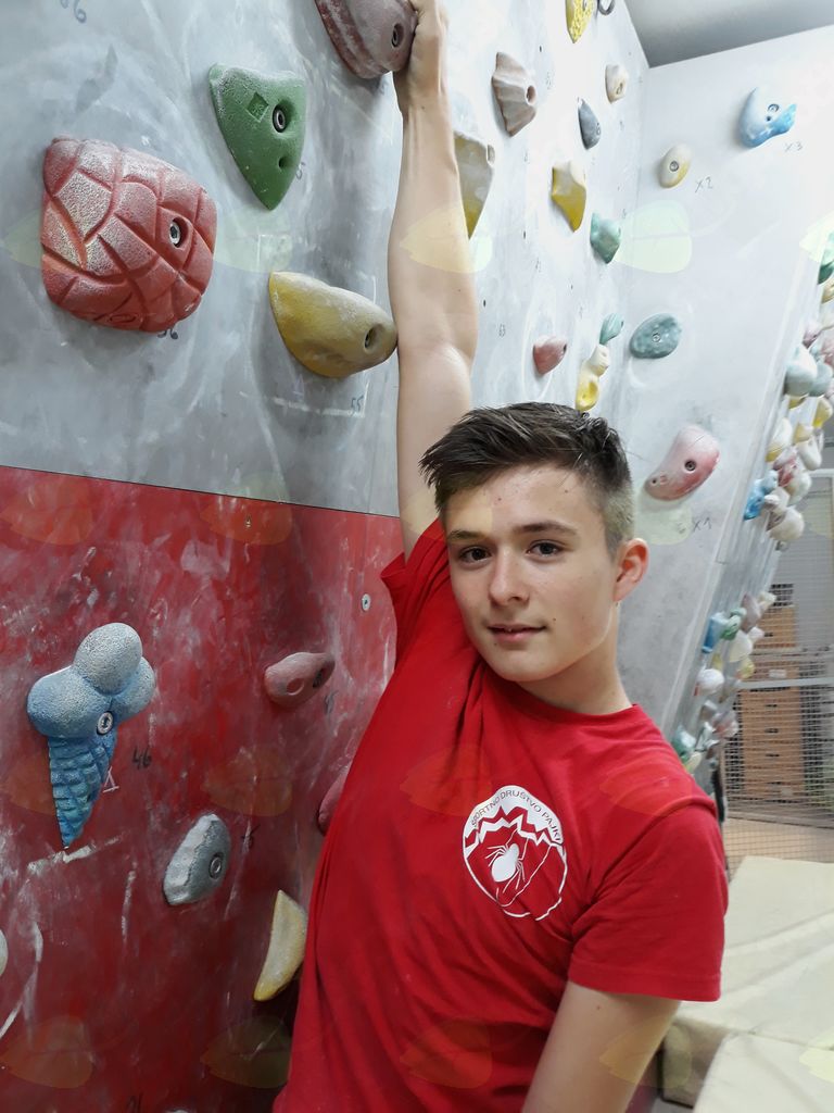»Star sem 13 let in plezam približno 6 let. Plezanje mi veliko pomeni, saj se ob tem skupaj s prijatelji, ki plezajo, družimo in zabavamo. Moja želja pri plezanju je, da bom lahko plezal skupaj s prijatelji, tudi zunaj v plezališčih v naravi, kjer najraje plezam. Rad tudi tekmujem, saj so smeri po navadi dobre in jih rad preizkusim. Moj najboljši dosežek je prvo mesto v težavnosti v licenci B. Težavnost je tudi moja najljubša disciplina pri športnem plezanju. Moj vzornik je Jernej Kruder.«