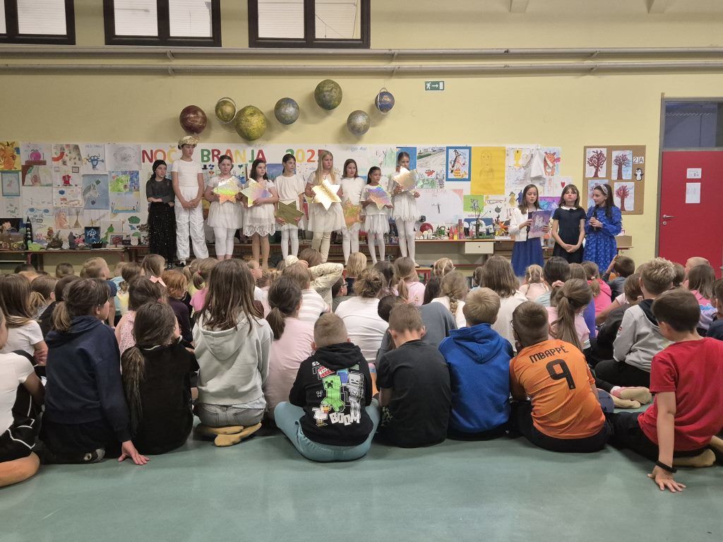 A noč se s tem še zdaleč ni končala. Ko so potihnile zgodbe, ugasnile zadnje luči ustvarjalnih delavnic in se je slišal le še tih smeh, so se učenci s svetilkami v rokah odpravili v učilnice, ki so se za eno noč spremenile v čisto pravo pravljično prenočišče. Med blazinami, spalnimi vrečami in knjigami so zaspali v svetu domišljije – tam, kjer se sanje prepletajo s pravljicami.