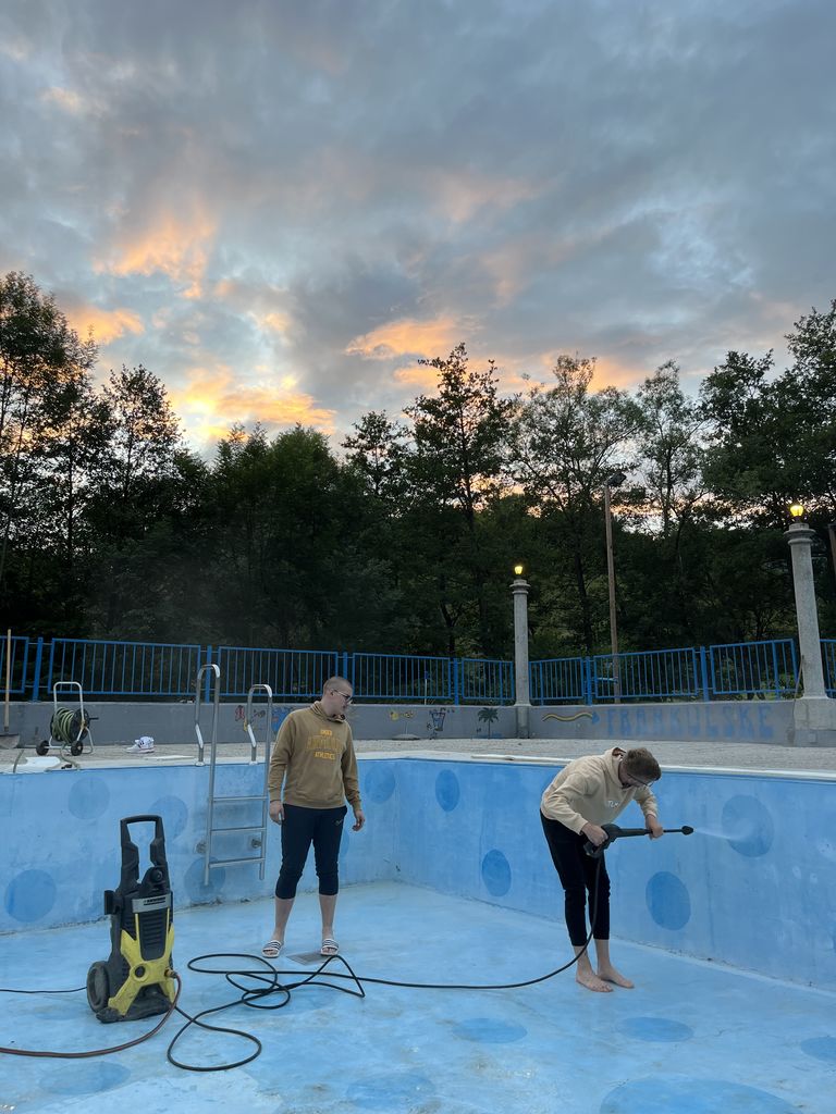 Junija smo nadaljevali čiščenje ter opravili vsa potrebna vzdrževalna dela za nemoteno obratovanje bazena. Prenovili smo streho in notranjost naše brunarice, ki služi kot barček. Posebno pozornost smo namenili urejanju okolice – zasadili smo rože, ki so nam jih prijazno podarili v vrtnarstvu Dar-Denj, za kar se jim iskreno zahvaljujemo. Tik pred odprtjem smo končali še zadnja dela, očistili bazen in bazensko školjko ter dokončno uredili strojnico in celoten videz bazena.