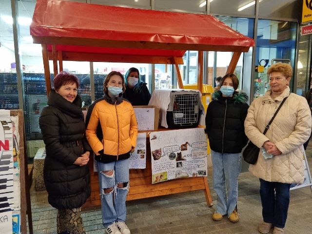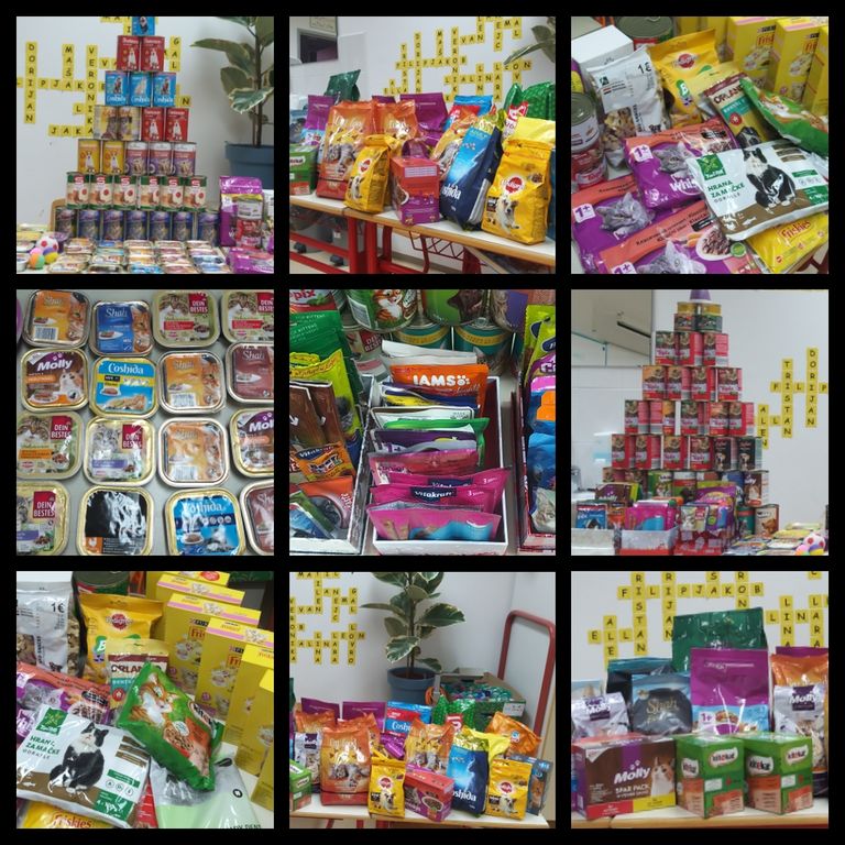 V treh tednih, kolikor je na šoli trajala akcija, smo zbrali skoraj 100 kilogramov mačje in pasje hrane. Odločili smo se, da naredimo malce drugačen zaključek akcije in to izven zidov naše šole. V sredo, 17. novembra, smo od 16. do 18. ure na stojnici pred supermarketom Tuš v Vojniku zbirali prispevke mimoidočih in predstavljali društvo. Na stojnici smo bile predstavnice Šolskega parlamenta, predstavnici društva, družbo pa nam je delal tudi čudovit maček Dixy, ki je privabil kar nekaj pogledov mimoidočih. Vzdušje je bilo odlično, veliko je bilo dobre volje, klepetanja, obiskali so nas tudi predstavniki Novega tednika. Predstavnici društva sta parlamentarkama izročili simbolične nagrade podjetja Vivapen za učence naše šole. Ob koncu dneva smo ugotovili, da smo na stojnici dobili še dodatnih 40 kilogramov hrane, kar pomeni, da smo vsega skupaj zbrali kar 137,5 kg. Vsem, ki ste prispevali svoj delež, se najlepše zahvaljujemo v imenu naših kosmatih štirinožnih prijateljev.