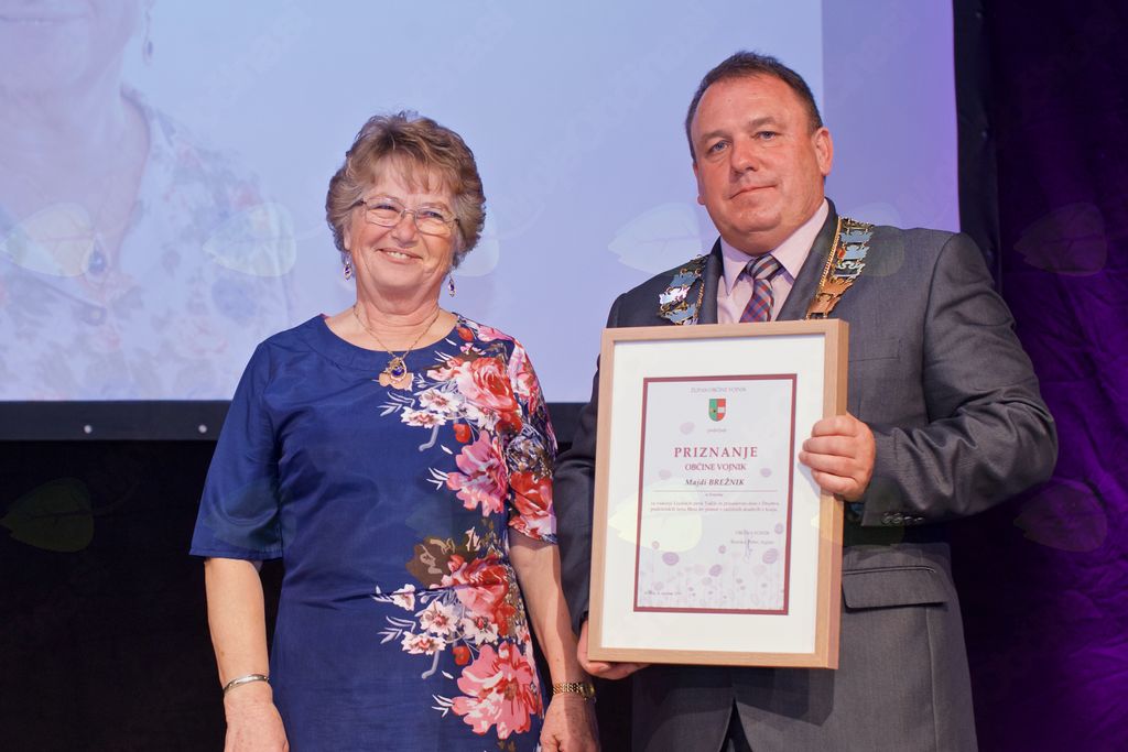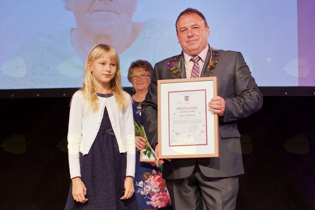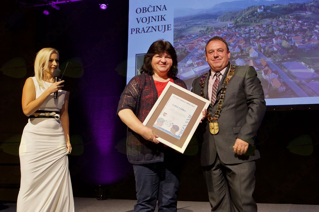 Marija Gorenak (Lešje – Vojnik) za delovanje v okviru Društva podeželskih žena Meta in za velikodušno pomoč sokrajanom v stiski ter za vsakoletno umetniško urejanje cerkve sv. Jerneja in kraja ob dogodkih. Gospa Marija se zaradi slabšega zdravstvenega stanja prireditve ni mogla udeležiti, zato je v njenem imenu priznanje prevzela vnukinja Glorija.
