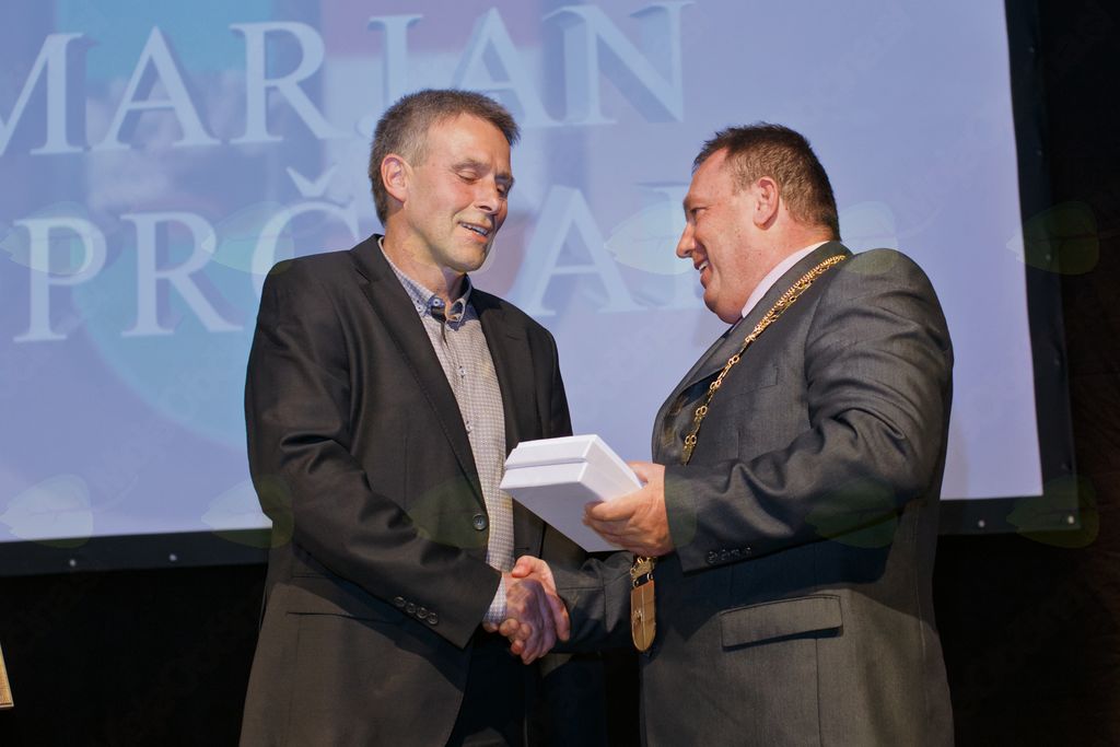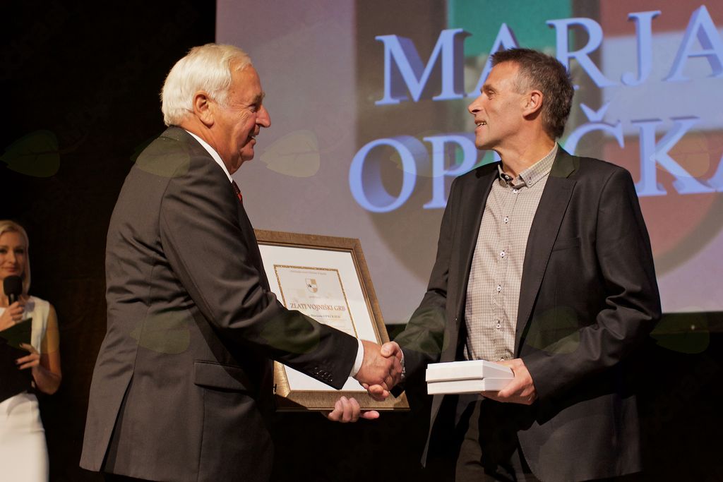 Zlati vojniški grb je Marjan Oprčkal (Višnja vas – Vojnik) prejel za ustanovitev in dolgoletno predano vodenje Košarkarskega kluba Vojnik, popularizacijo košarke med mladimi, zmago na 14. svetovnem in 9. evropskem košarkarskem prvenstvu veteranov ter za nesebično pomoč sokrajanom kot predstavnik v svetu Krajevne skupnosti Vojnik in kot podjetnik pokrovitelj. V nagovoru se je najprej Marjan Oprčkal v imenu vseh nagrajencev zahvalil občini in občinskemu svetu za prejeta priznanja ter govor nadaljeval v košarkarskem duhu – kako med odmorom podati soigralcem ključne napotke za zmago. Glede na dosedanjo življenjsko pot je napotke osmislil z besedami zahvale vsem trenerjem, ekipi, otrokom in staršem, ki so duša kluba, in poudaril zavedanje, kako je pomembno, da odgovorni, ki imajo na voljo finančna sredstva, znajo prepoznavati dobre projekte. Ob zaključku je dodal, da ni lepšega na svetu, ko človek najde nekaj, kar najraje počne. »Košarka je bila ljubezen na prvi pogled!« je še poudaril in se zahvalil družini, ki ji je namenjal premalo časa. Na koncu je hudomušno povzel akcijo z besedami: »Igramo akcijo dva, »šutiram ja«! Za svojevrstno presenečenje je poskrbela tudi hči Urška, ki ga je s fotografijo pozdravila iz Kenije, kjer je na dobrodelni odpravi.