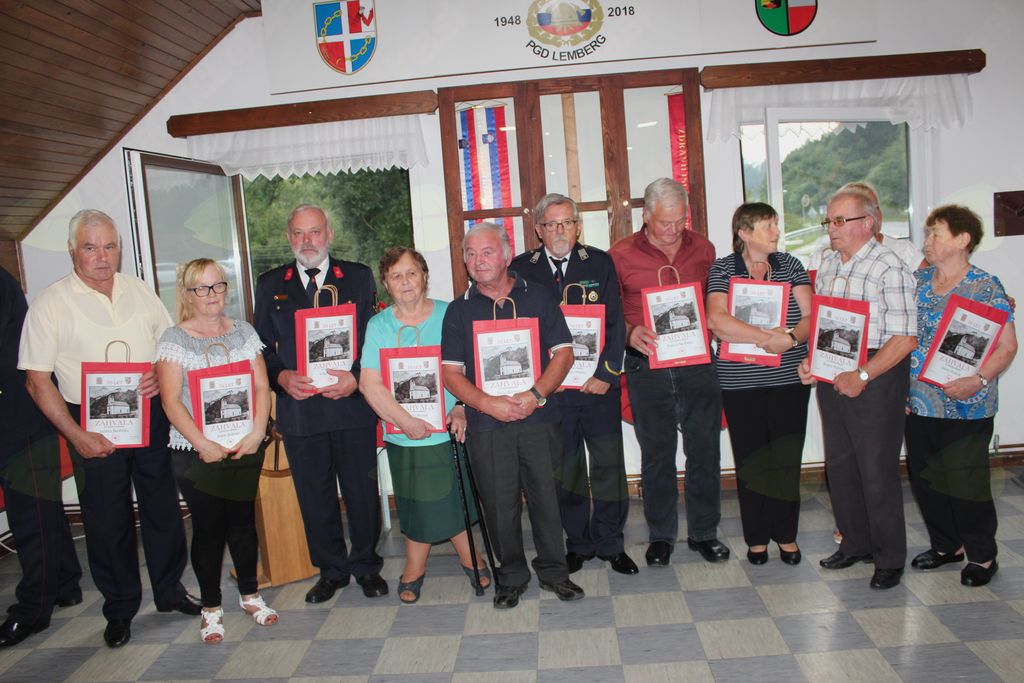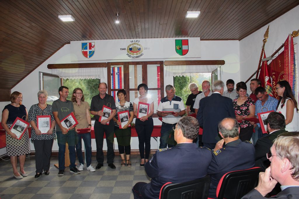 70 let PGD Lemberg in njihovo uspešno poslanstvo so v svojih nagovorih poudarili: Branko Petre, župan Občine Vojnik, Slavko Jezernik, predsednik Sveta KS Nova Cerkev, dekan Alojz Vicman, Beno Podergajs, predsednik GZ Vojnik-Dobrna, in predsedniki vseh sosednih društev. Na seji so podelili priznanja vsem zaslužnim gasilcem in njihovim sodelavcem. Zahvale, ki jih je bilo 70, so prejeli člani PGD Lemberg za vzorno delo in povabljeni gostje. GZ Vojnik-Dobrna je podelila 10 priznanj I., II. in III. stopnje za dolgoletno vzorno delo v PGD Lemberg, GZ Slovenije pa priznanja Mariji Škoflek, Francu Škofleku, Viliju Furlanu, Jožetu Hrenu, Aleksandru Škofleku in Damijanu Najdeniku za dolgoletno uspešno delo v PGD Lemberg in v okolju, kjer živijo in delajo.