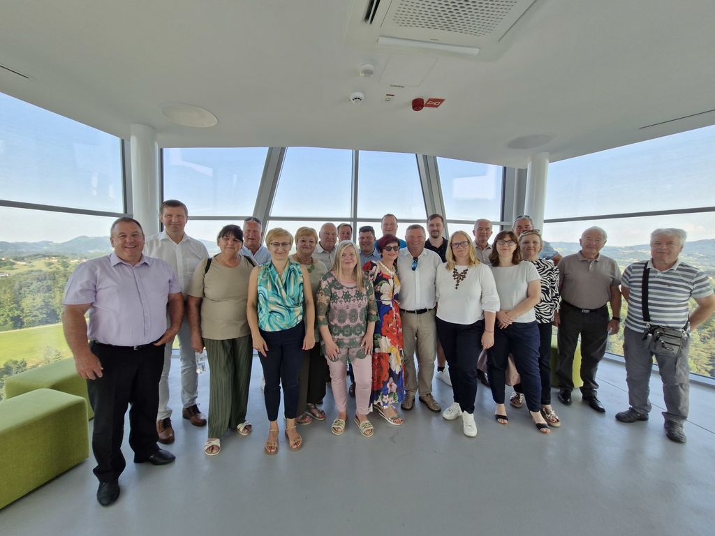 Spoznali smo razvojne usmeritve občine gostiteljice, njeno načrtovanje na področju urbanizma, prometne in komunalne infrastrukture, turizma ter upravljanja javnega prostora. Posebno pozornost je pritegnil projekt razglednega stolpa Kristal, ki z izvirno vsebinsko zasnovo, estetsko umestitvijo in regionalnim pomenom presega zgolj lokalni kontekst. Gre za primer sinergije med identiteto kraja, strateško umestitvijo v turistično ponudbo in dolgoročno naložbo v prepoznavnost kraja. Takšni ogledi omogočajo objektivno oceno investicij – ne le skozi številke, ampak skozi učinke na skupnost. Župan mag. Branko Kidrič je pri predstavitvi projekta izkazal izjemno globoko poznavanje razvojnih izzivov ter ponudil dragocen vir informacij, praktičnih pristopov in učinkovitih rešitev, ki so nastali na podlagi konkretnih izkušenj in strateškega razmišljanja.